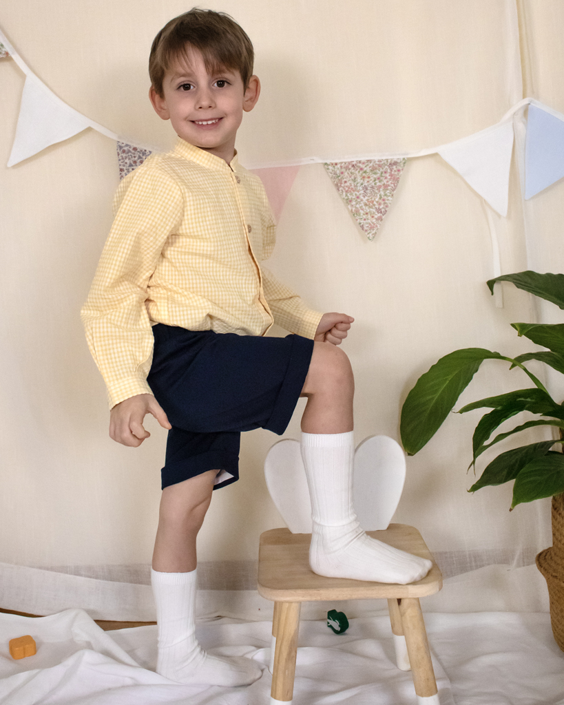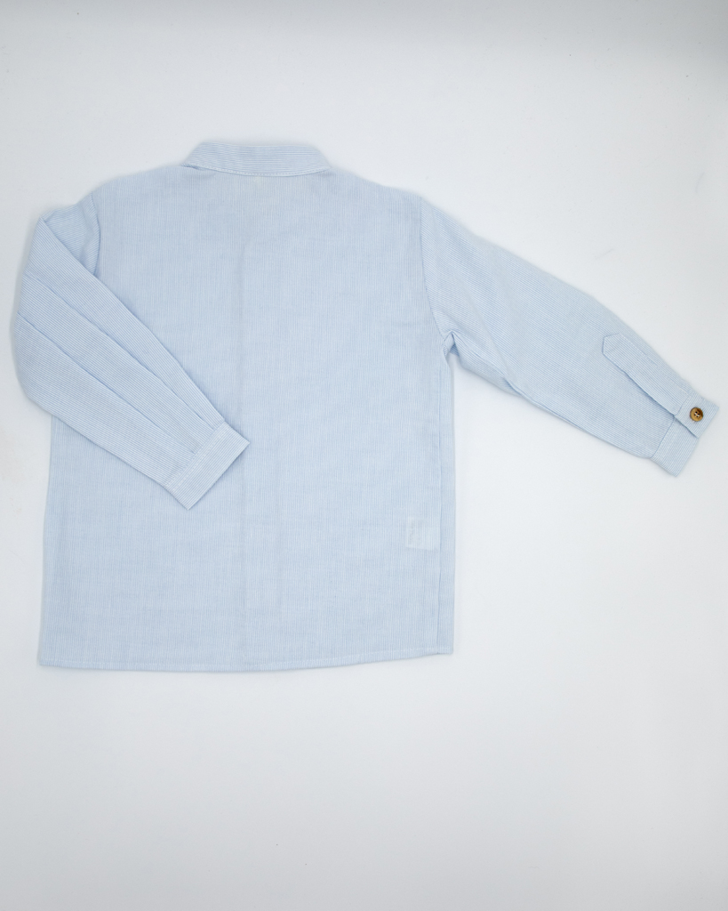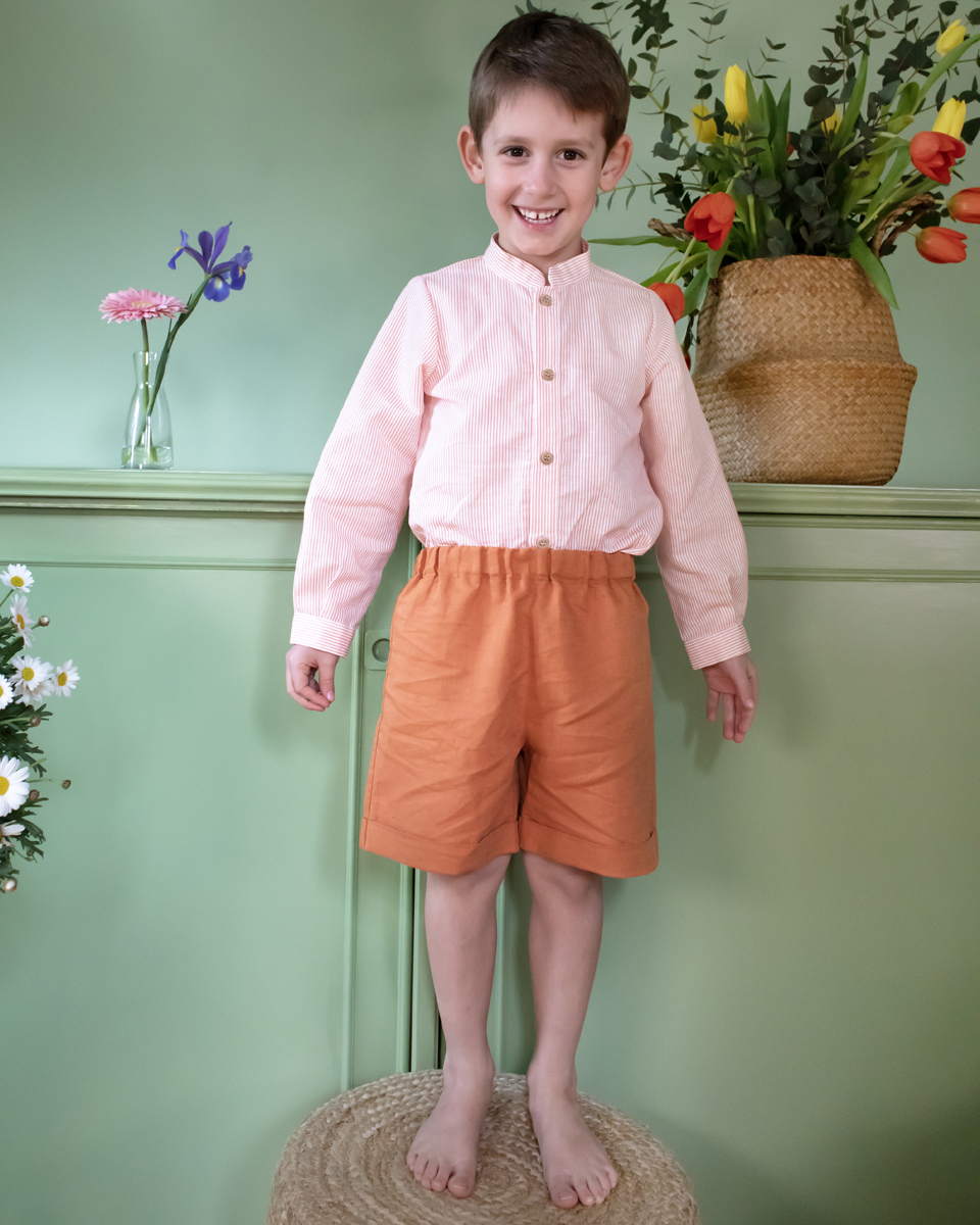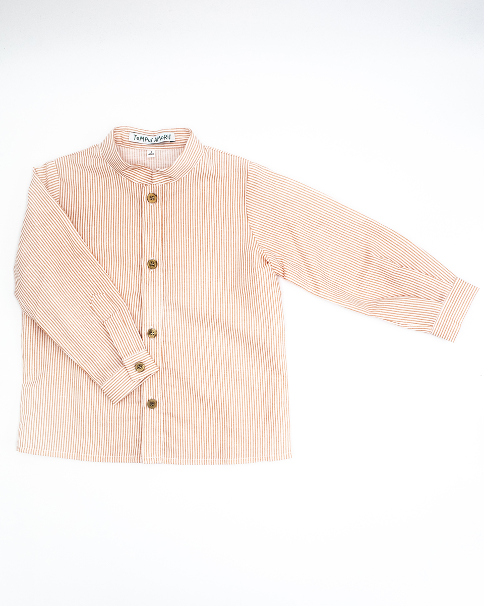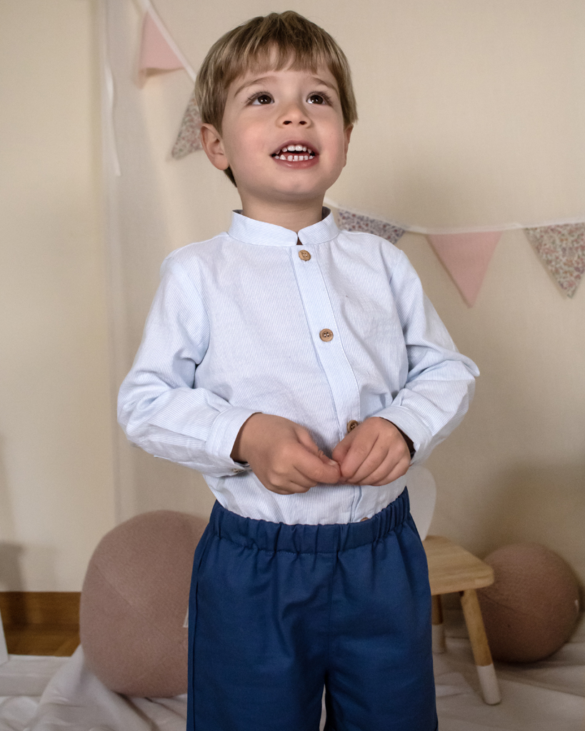 Camicia coreana in cotone o lino 100% Made in Italy, dallo stile semplice e raffinato. Pensata per accompagnare ogni giorno dei più piccoli con comfort naturale e un’eleganza senza tempo.