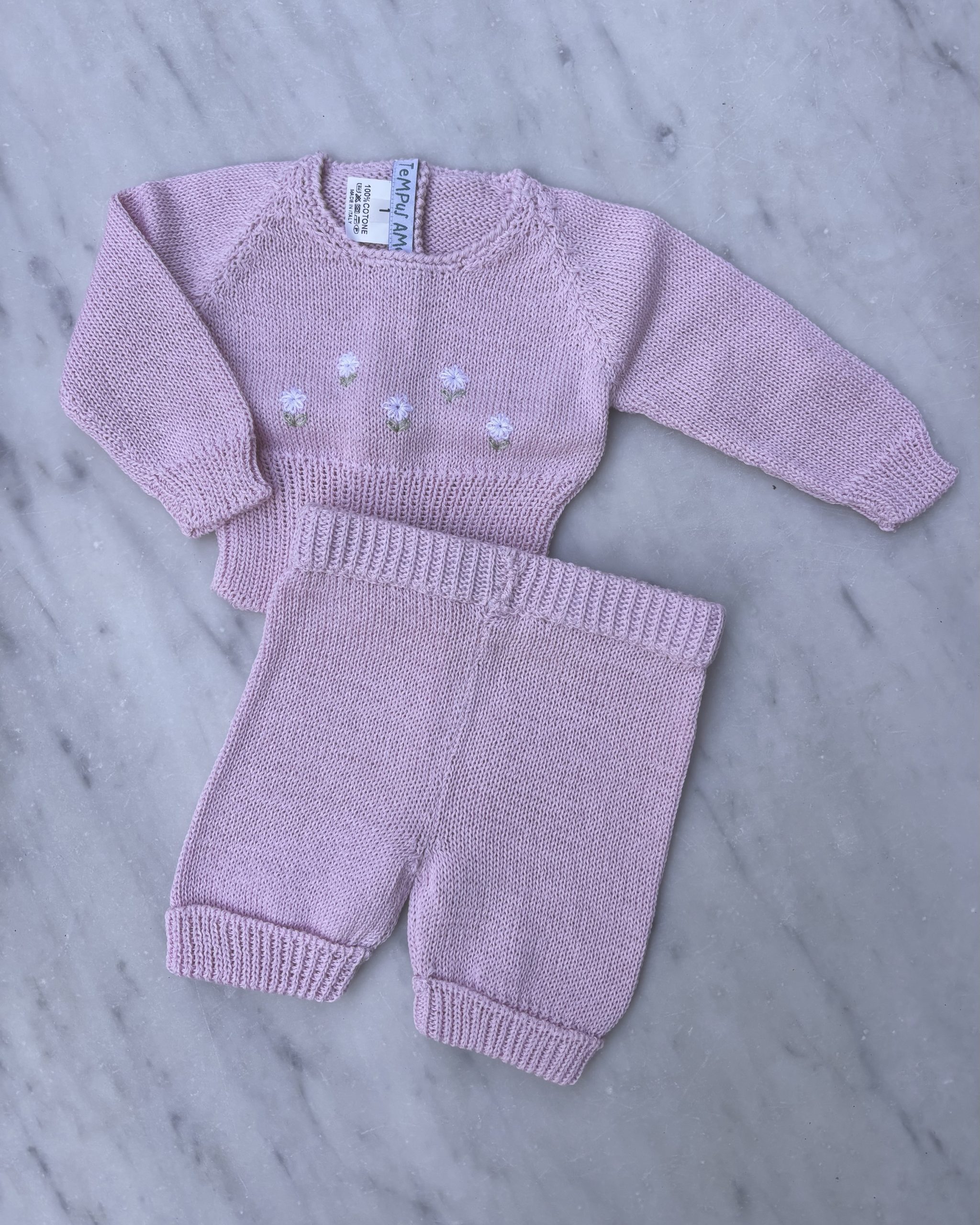 Il ricamo con le margherite dona un tocco classico e senza tempo, mentre il cotton soft garantisce calore e comfort nei primi mesi di vita del neonato.