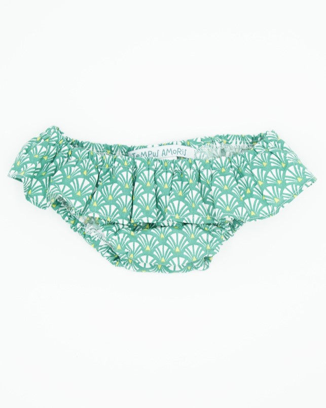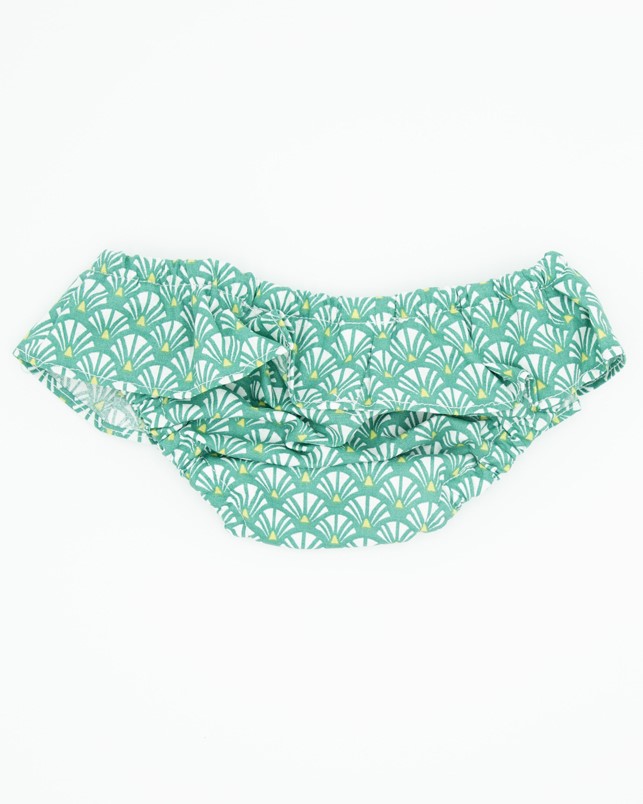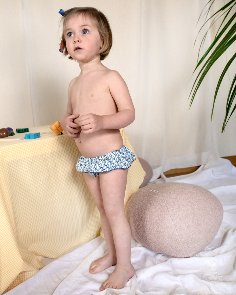 I costumi slip da bambina con la rouche sono realizzati in cotone fantasia, con morbido elastico in vita per le bambine sempre in movimento, ma senza rinunciare ad un tocco di femminilità con la rouche.