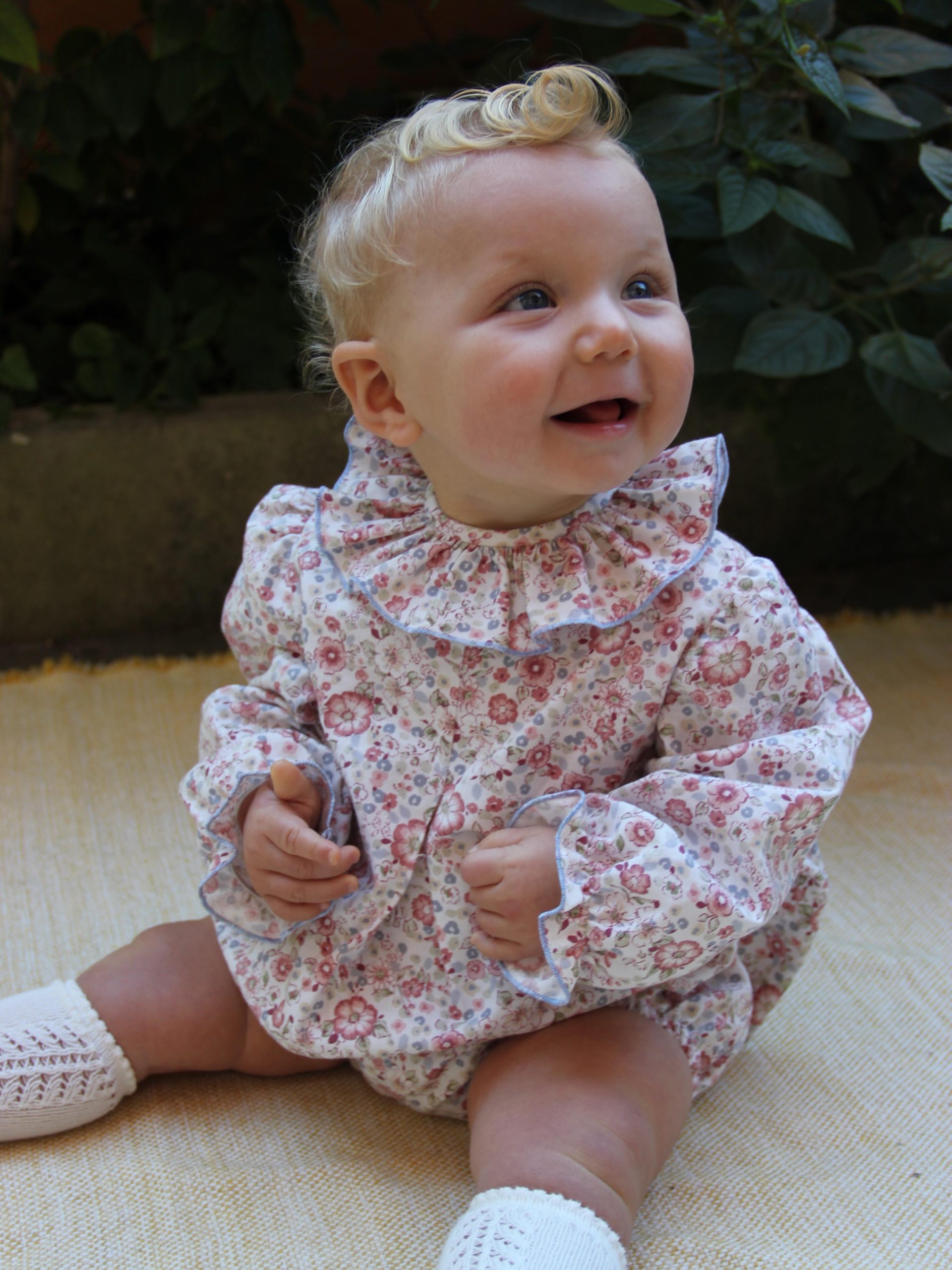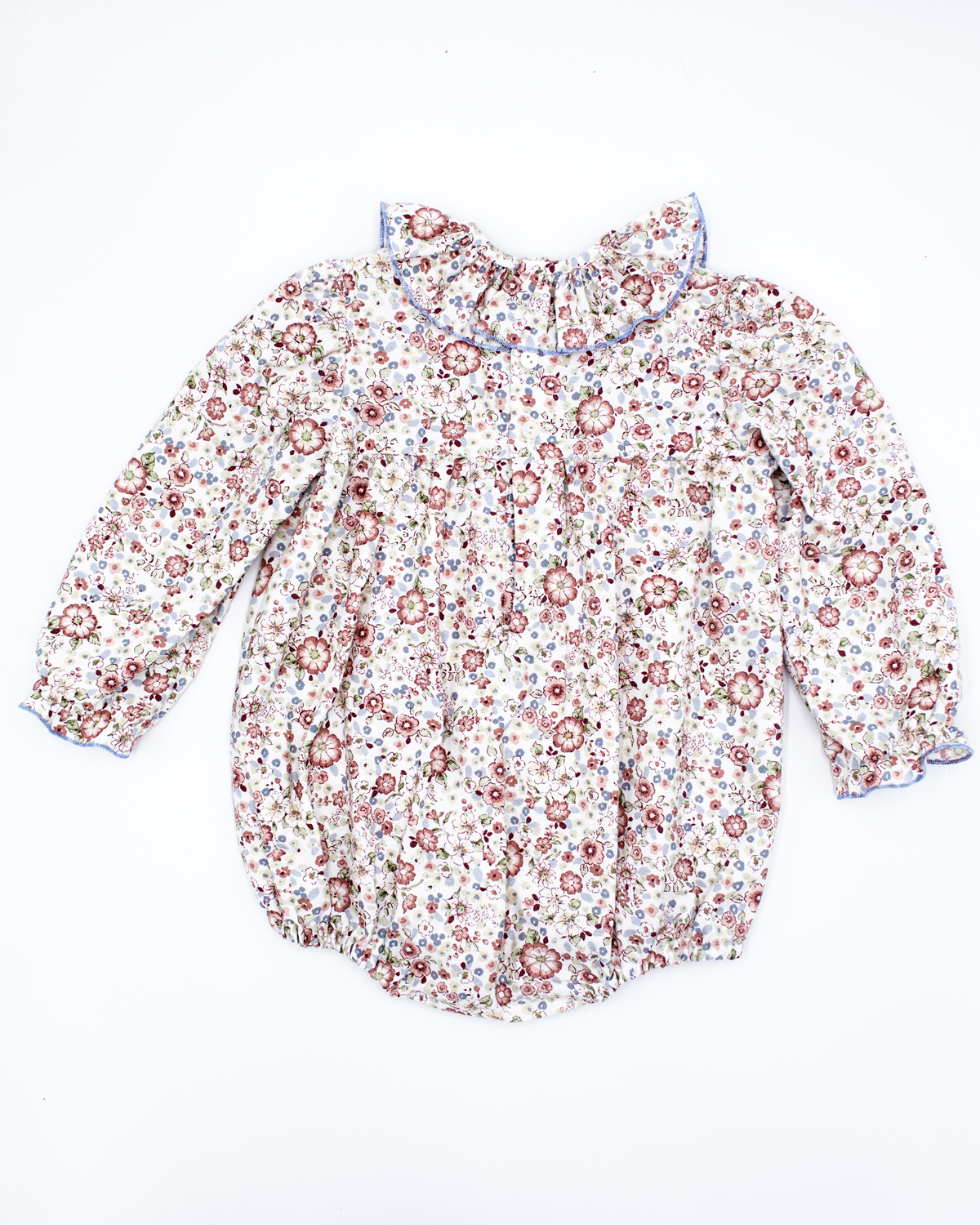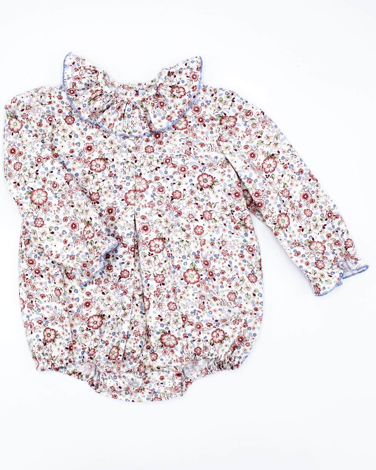 Il Pagliaccetto è realizzato in flanellina di puro cotone a fantasia, morbida e delicata sulla pelle. Il dettaglio rouche sul collo e le maniche lunghe aggiungono un tocco raffinato, perfetto per accompagnare le bimbe con stile.