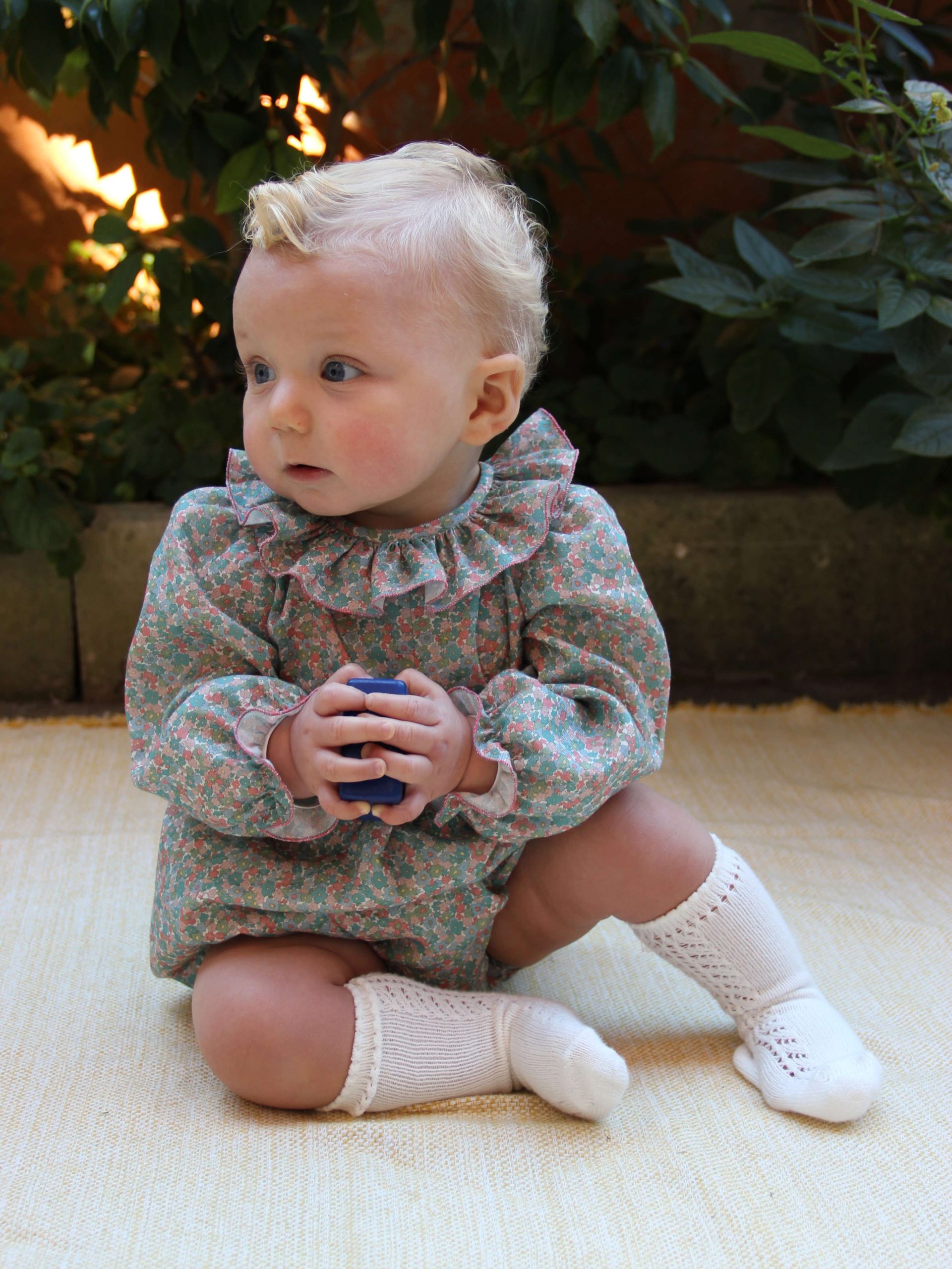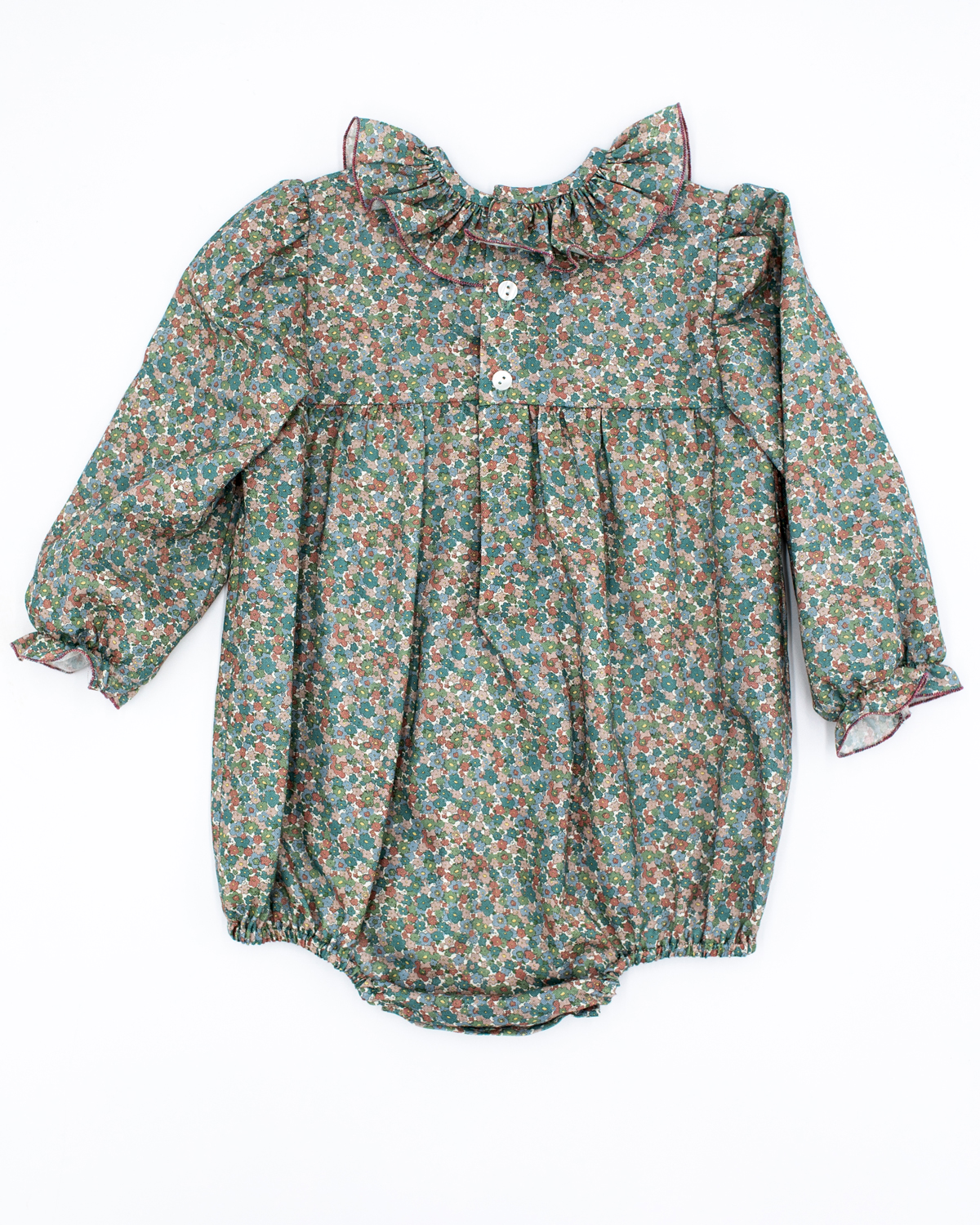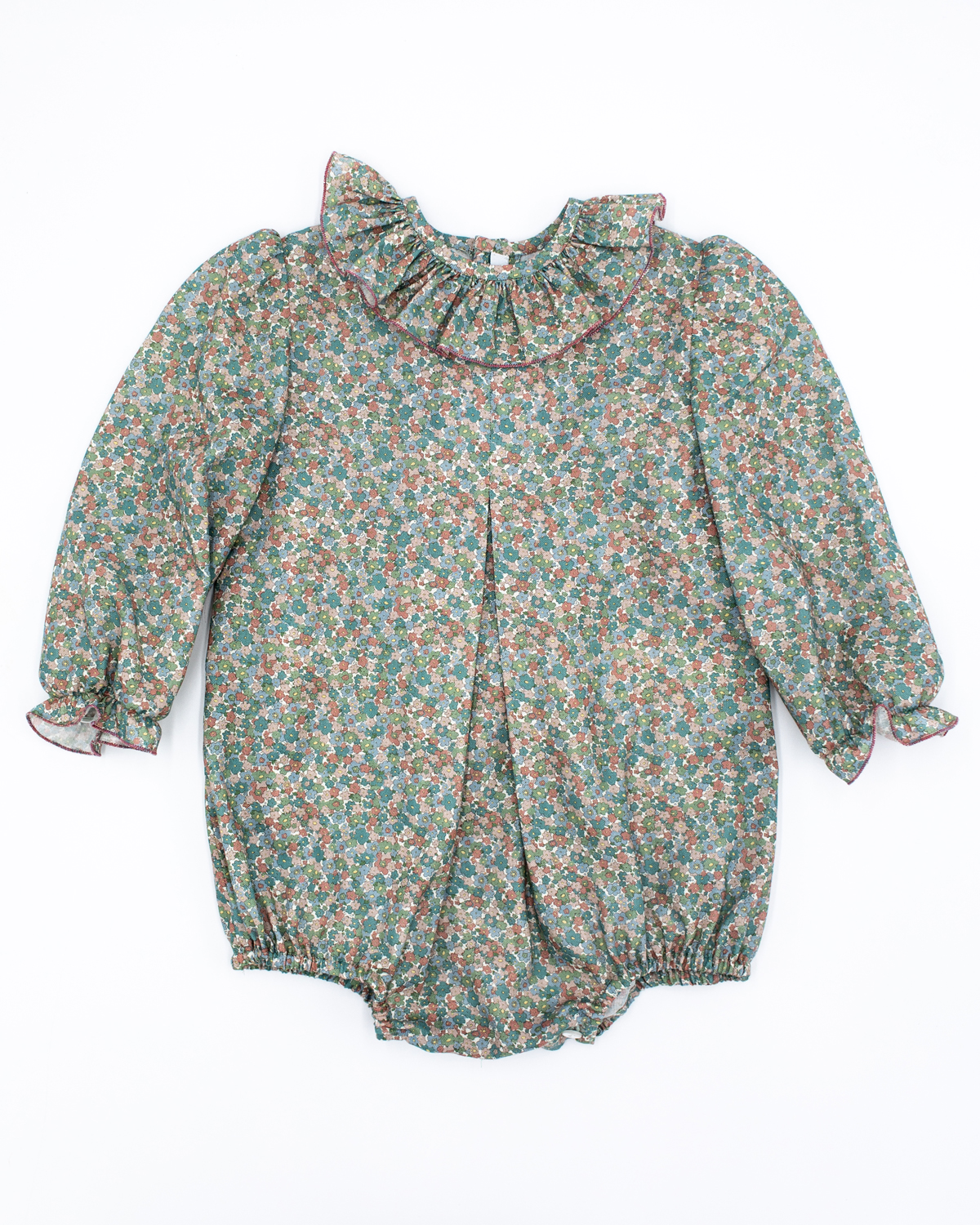 Il Pagliaccetto è realizzato in flanellina di puro cotone a fantasia, morbida e delicata sulla pelle. Il dettaglio rouche sul collo e le maniche lunghe aggiungono un tocco raffinato, perfetto per accompagnare le bimbe con stile.