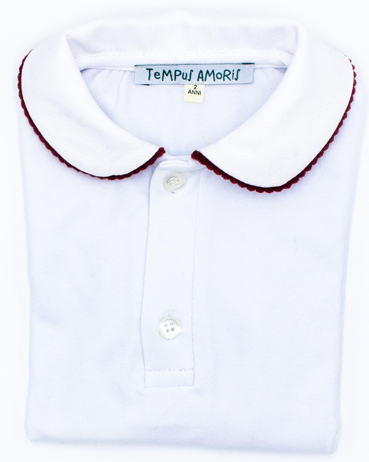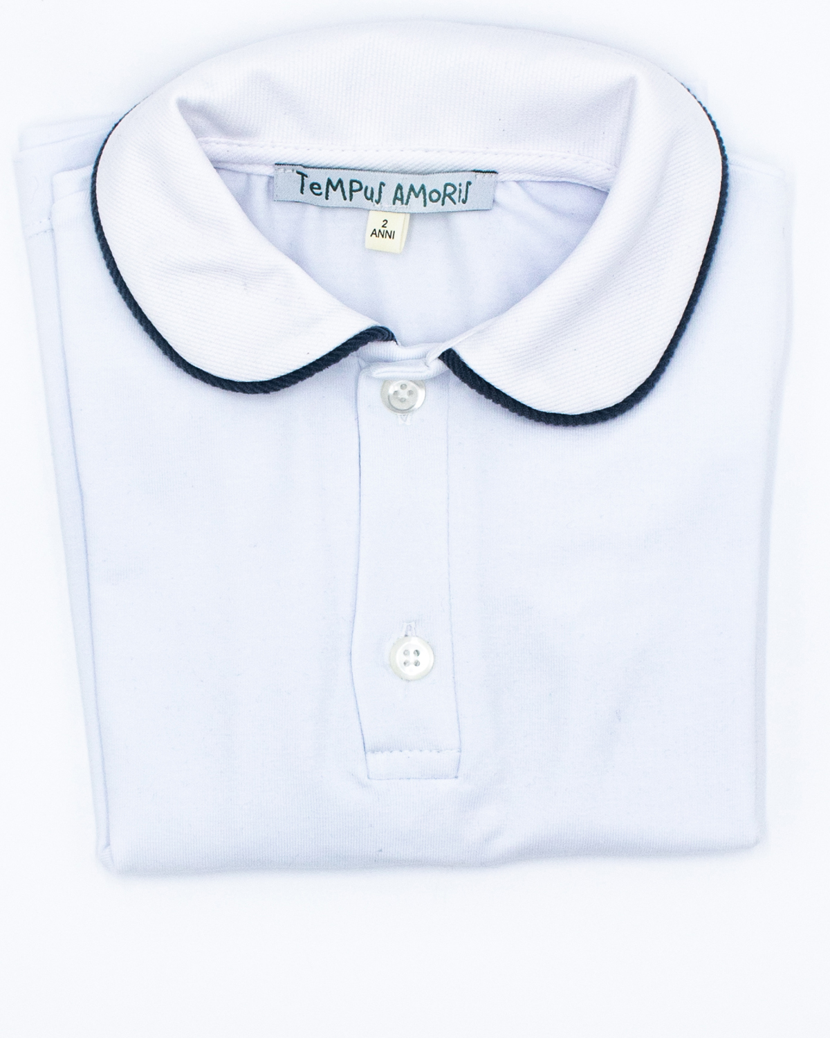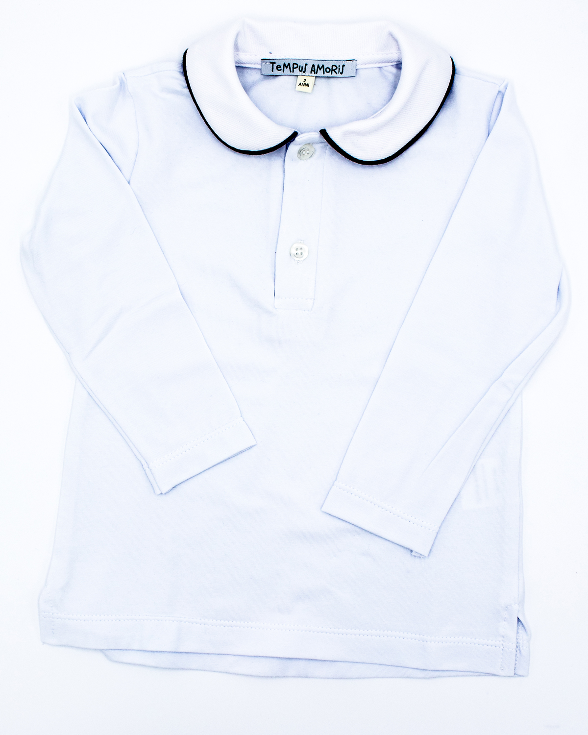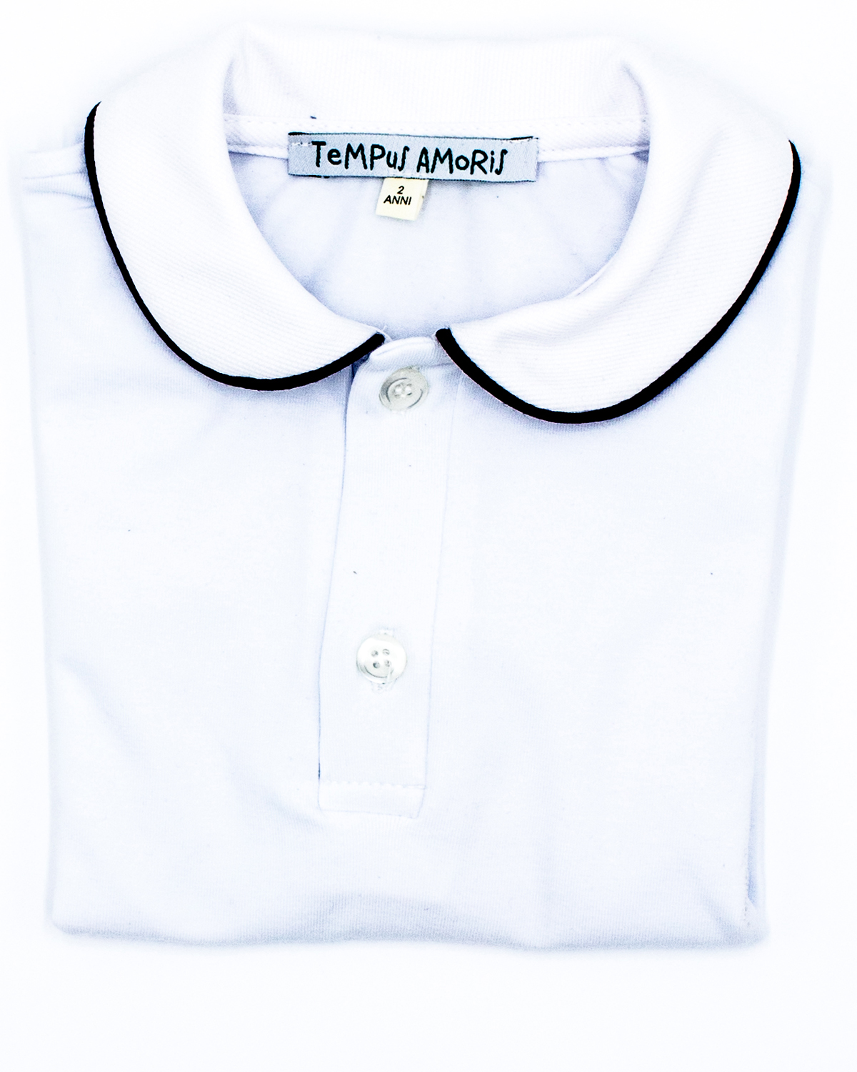 Polo in maglina di cotone con colletto in piquet 100% Made in Italy, perfetta per accompagnare ogni giorno dei più piccoli con stile semplice e confortevole.