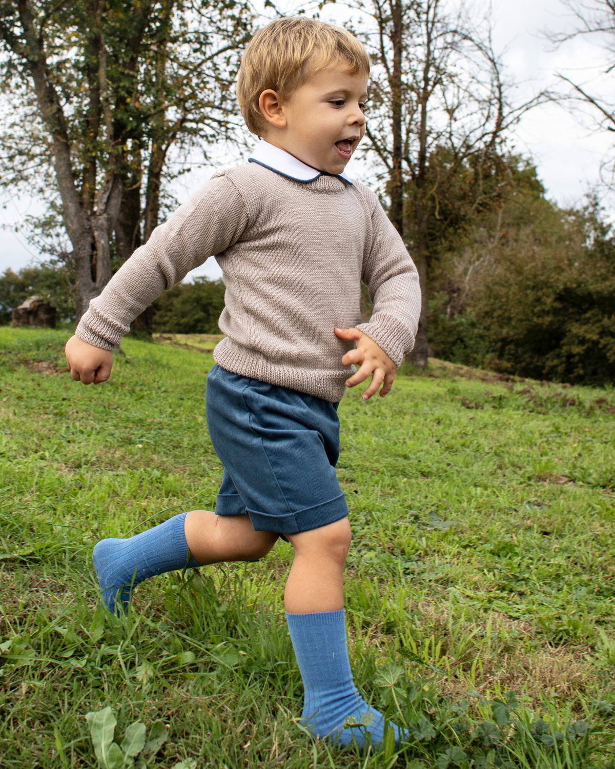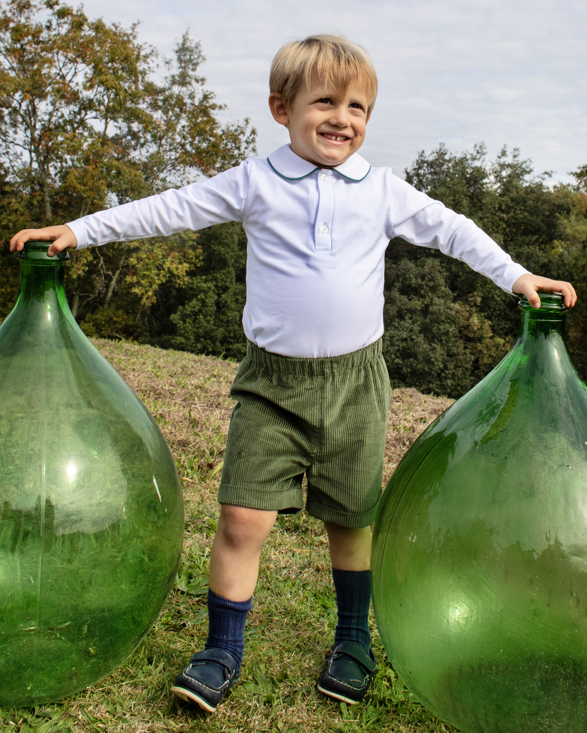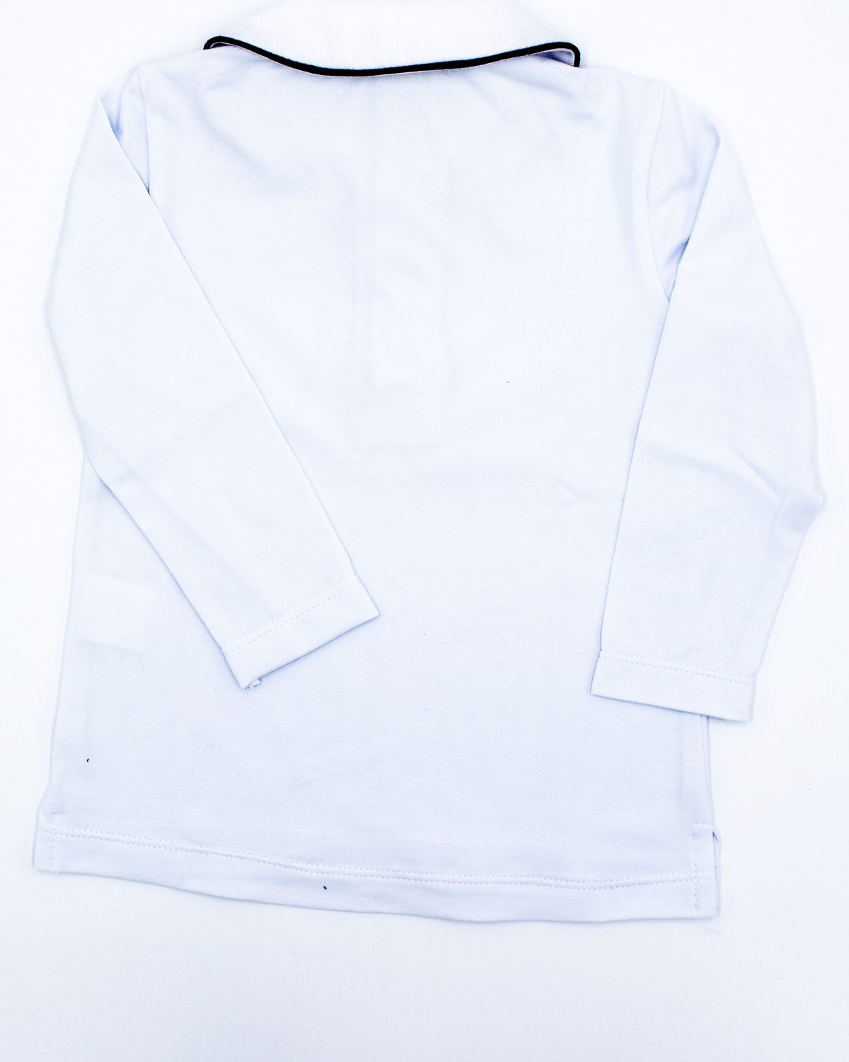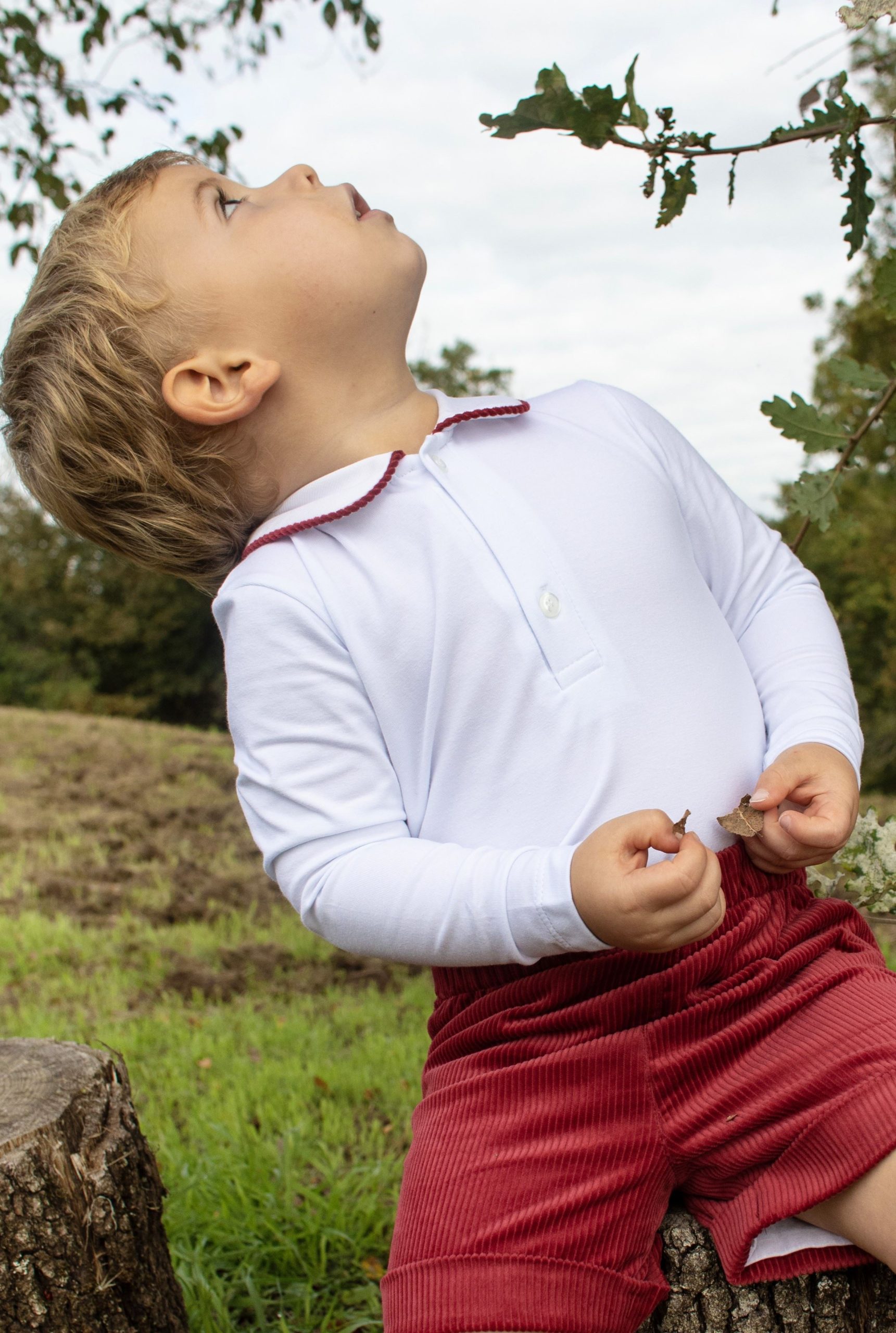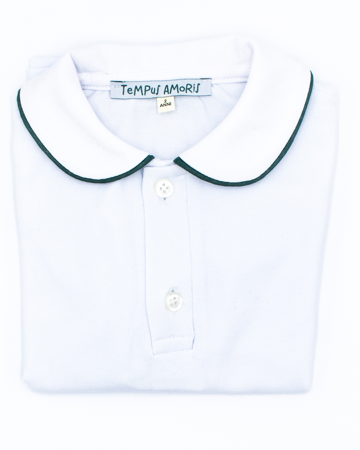 Polo in maglina di cotone con colletto in piquet 100% Made in Italy, perfetta per accompagnare ogni giorno dei più piccoli con stile semplice e confortevole.
