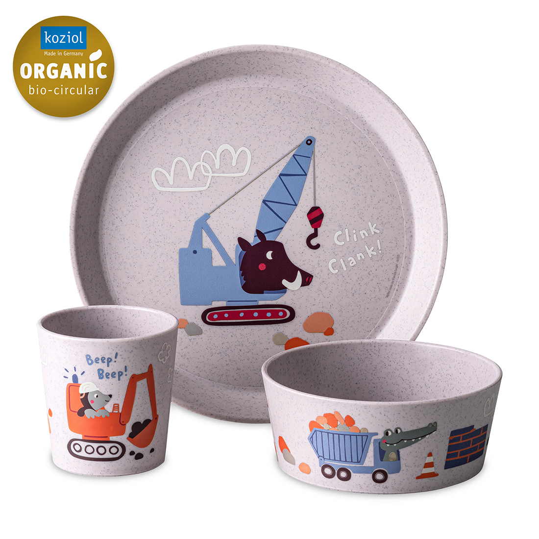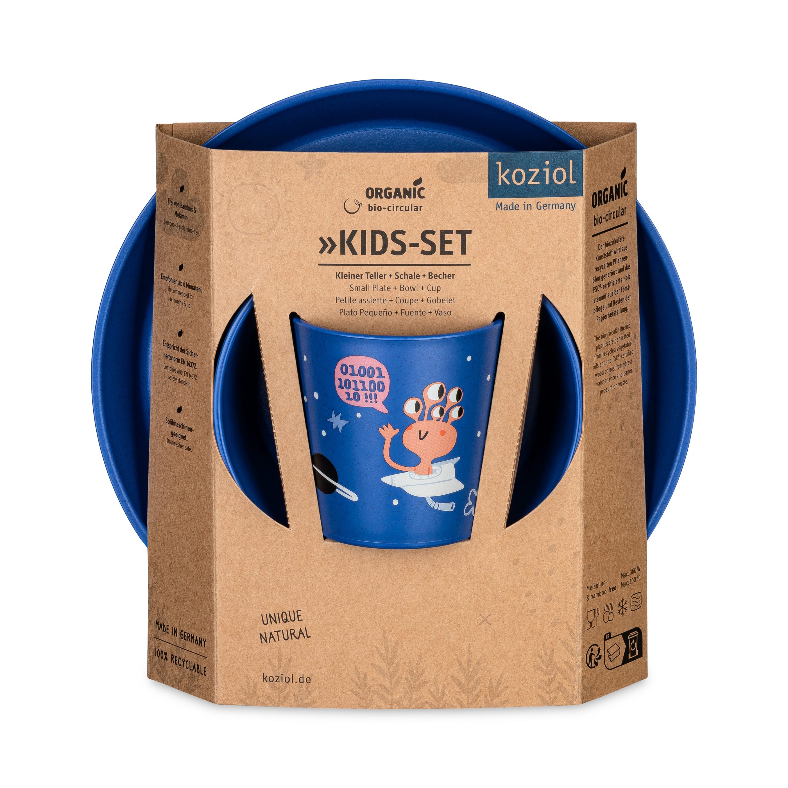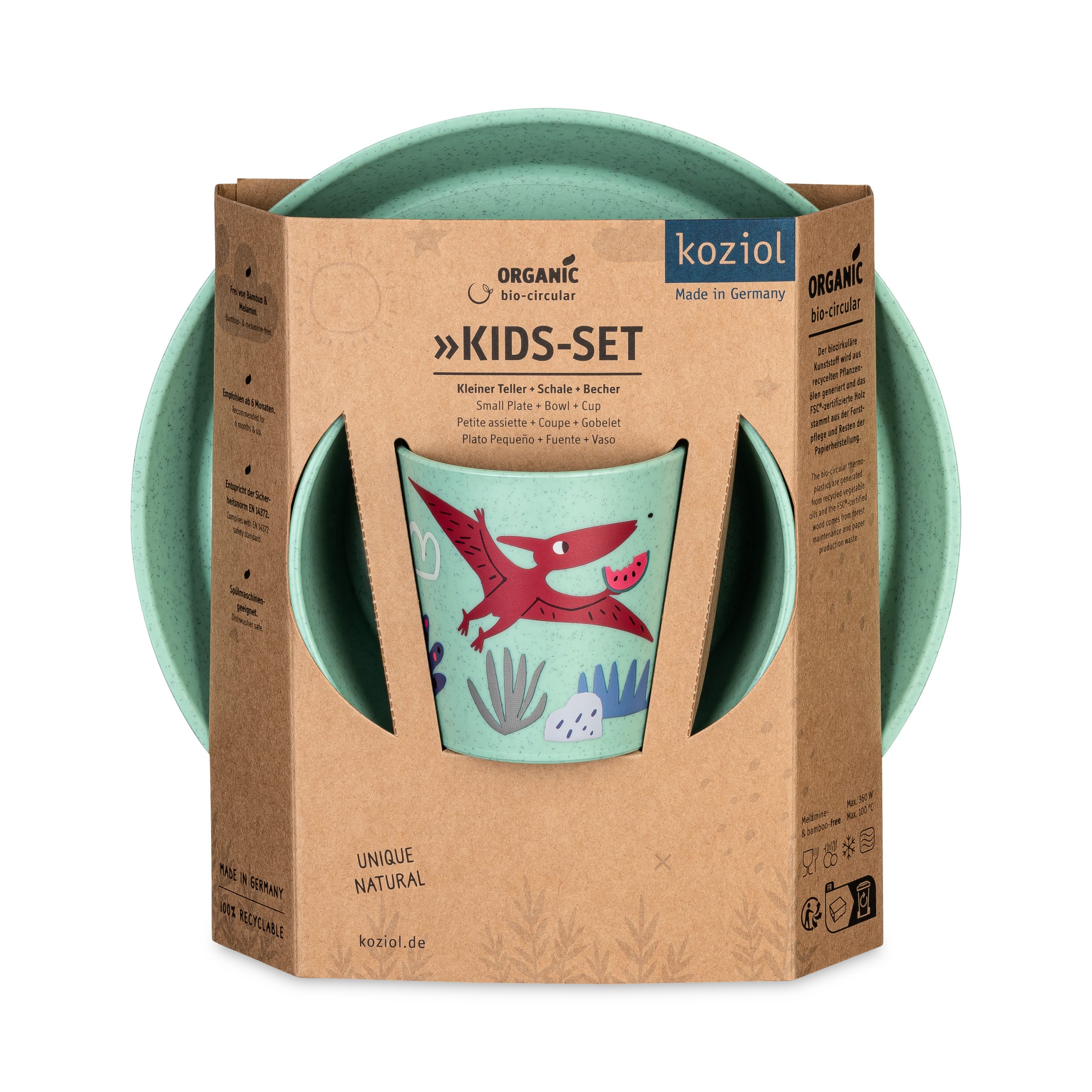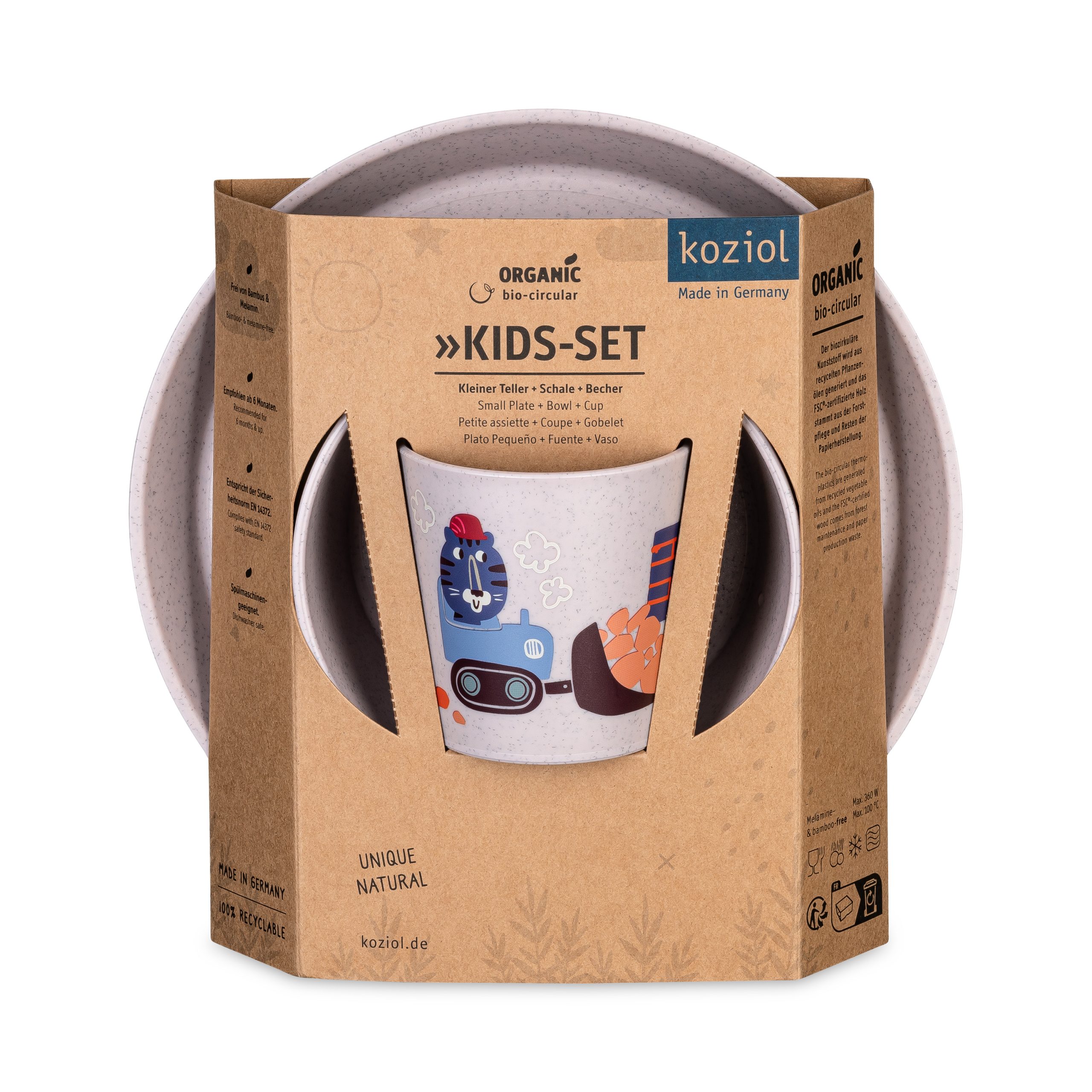Tutti i prodotti sono adatti al contatto con gli alimenti, realizzati con materiali certificati, privi di melamina, riciclabili al 100% e prodotti in Germania in modo equo e rispettoso dell’ambiente. Per i nostri prodotti per bambini utilizziamo la rivoluzionaria plastica bio-circolare riciclata dagli oli da cucina usati provenienti dalla ristorazione.